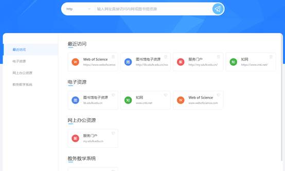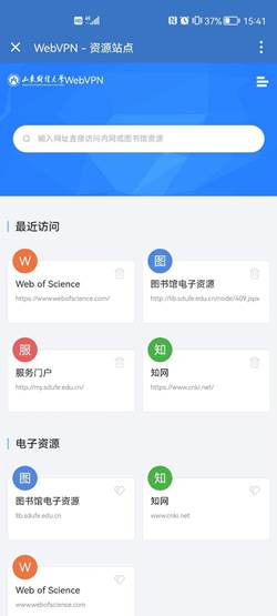 第三步:登录成功后,进入WebVPN资源导航页面,即可根据需要访问学校服务门户、图书馆电子资源等系统。