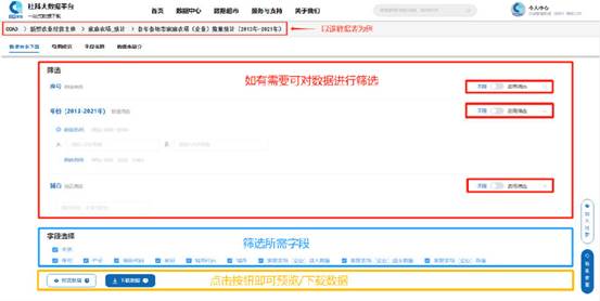 3.在导航栏选择需要的专题数据库→数据表→筛选字段等信息→预览数据或下载。