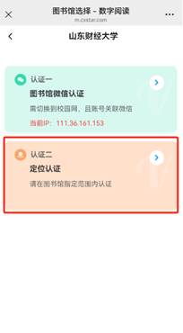 点击微信登陆按钮,绑定手机号,点击认证图书馆,选择认证二方式:定位认证(需要特别注意的是,在进行认证的时候,请确保您处于山东财经大学校园的范围之内)。